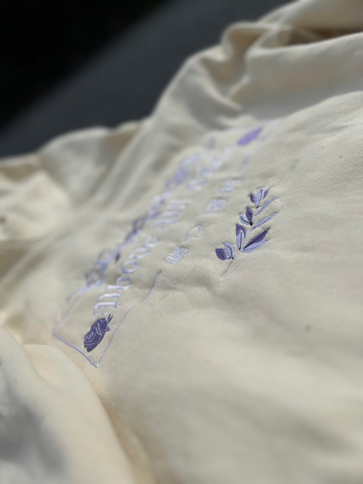 The Prevail satin-lined creme hoodie is truly a work of art. The design features a silky satin-lined hoodie for the interior to prevent drying and frizzing of the hair. Materials used are 100% cotton with 350 GSM, giving customers a soft comfortable texture and warmth. The designs on this beautiful piece are embroidered and hand-sewed from front to back giving a more lively clean look.